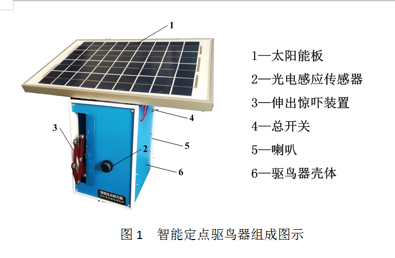 6、安裝完畢后使用時,向下扳動圖1中的總開關(guān),打開驅(qū)鳥器,可以用手遮擋一次圖1中的光電感應(yīng)傳感器,測試驅(qū)鳥器功能是否正常。