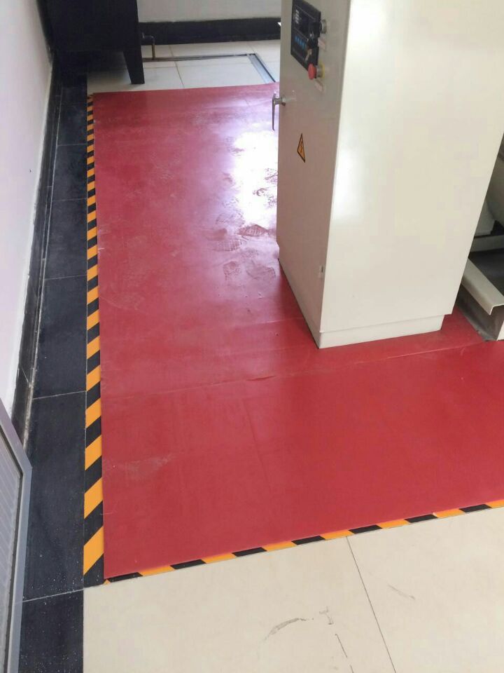 3、黑色絕緣膠墊普通地板磚地面,可以通過黃黑絕緣膠帶(絕緣漆)或反光膠帶進(jìn)行固定,看起來層次分明,整體風(fēng)格有很大的提升,如下圖: