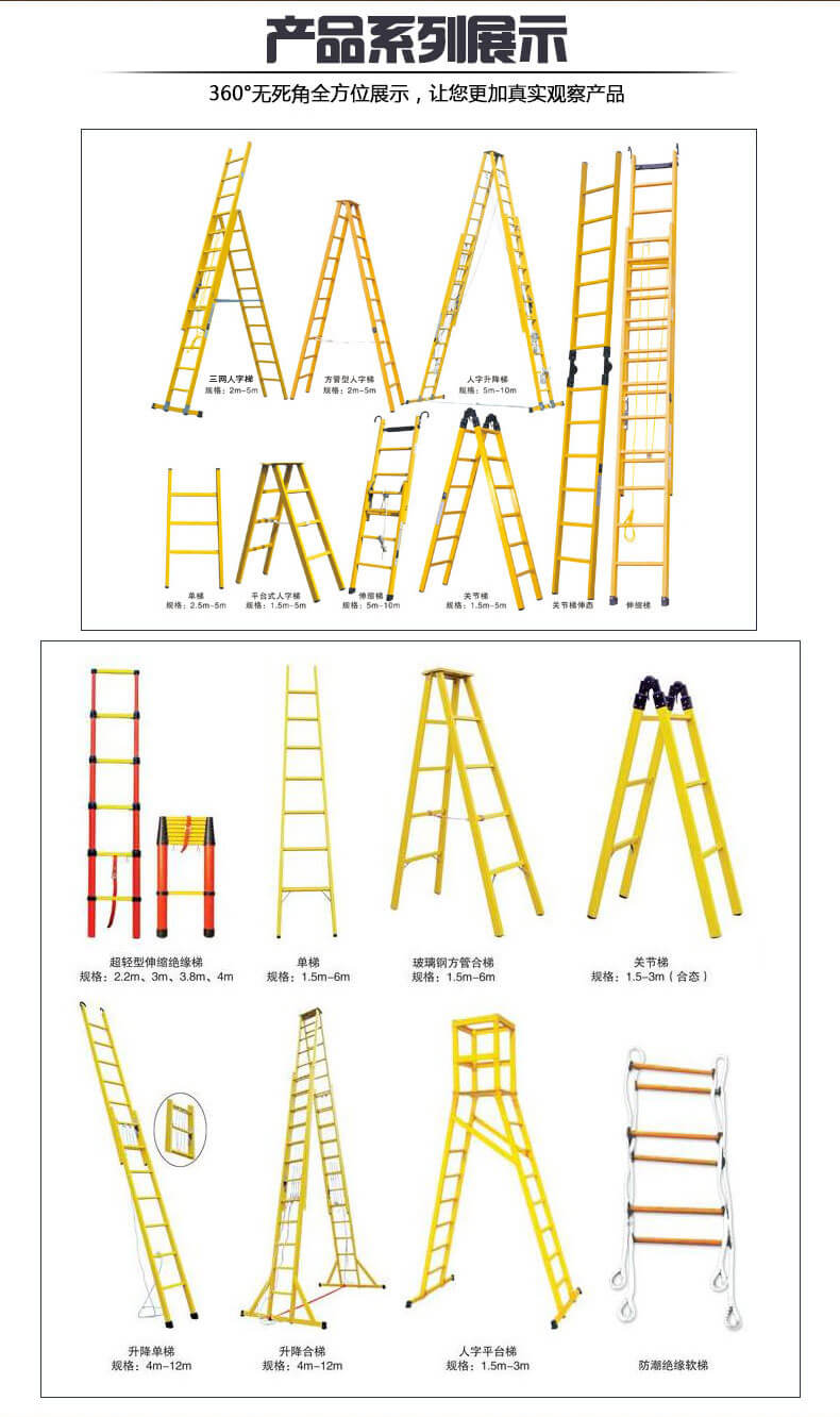 絕緣圓管梯、絕緣圓管伸縮梯:其重量為2KG/M,每米可承受200公斤的沖擊力,采用輕型環(huán)氧樹(shù)脂制作,輕便耐用,大大克服了原來(lái)市場(chǎng)上所銷(xiāo)售的方管絕緣梯的笨重、攜帶不便的弱點(diǎn)。產(chǎn)品特點(diǎn):輕便耐用,施工方便。